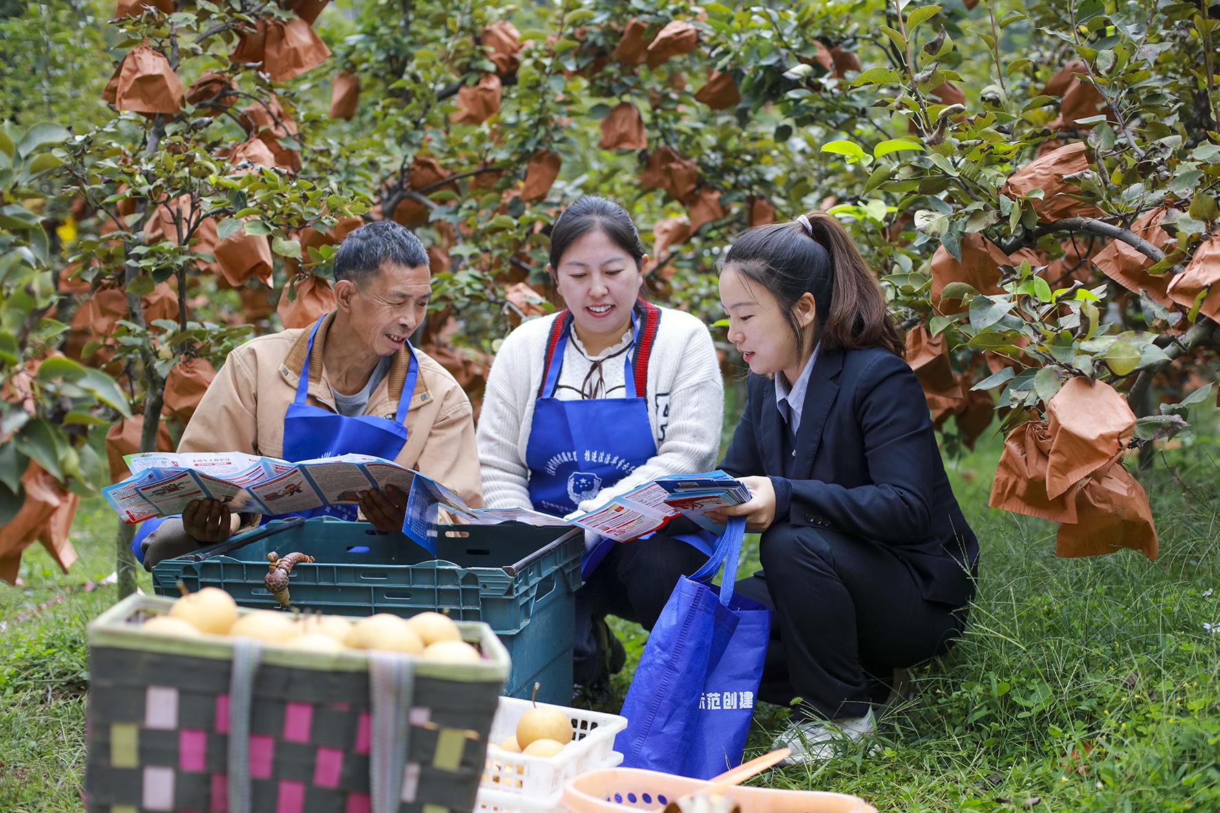 10月9日,貴州省黔西市司法局組織法治工作者走進轄區(qū)內(nèi)的鐵石苗族彝族鄉(xiāng)六棱山村金果梨果園,向果農(nóng)宣傳反詐、禁毒、民法典等法律知識。