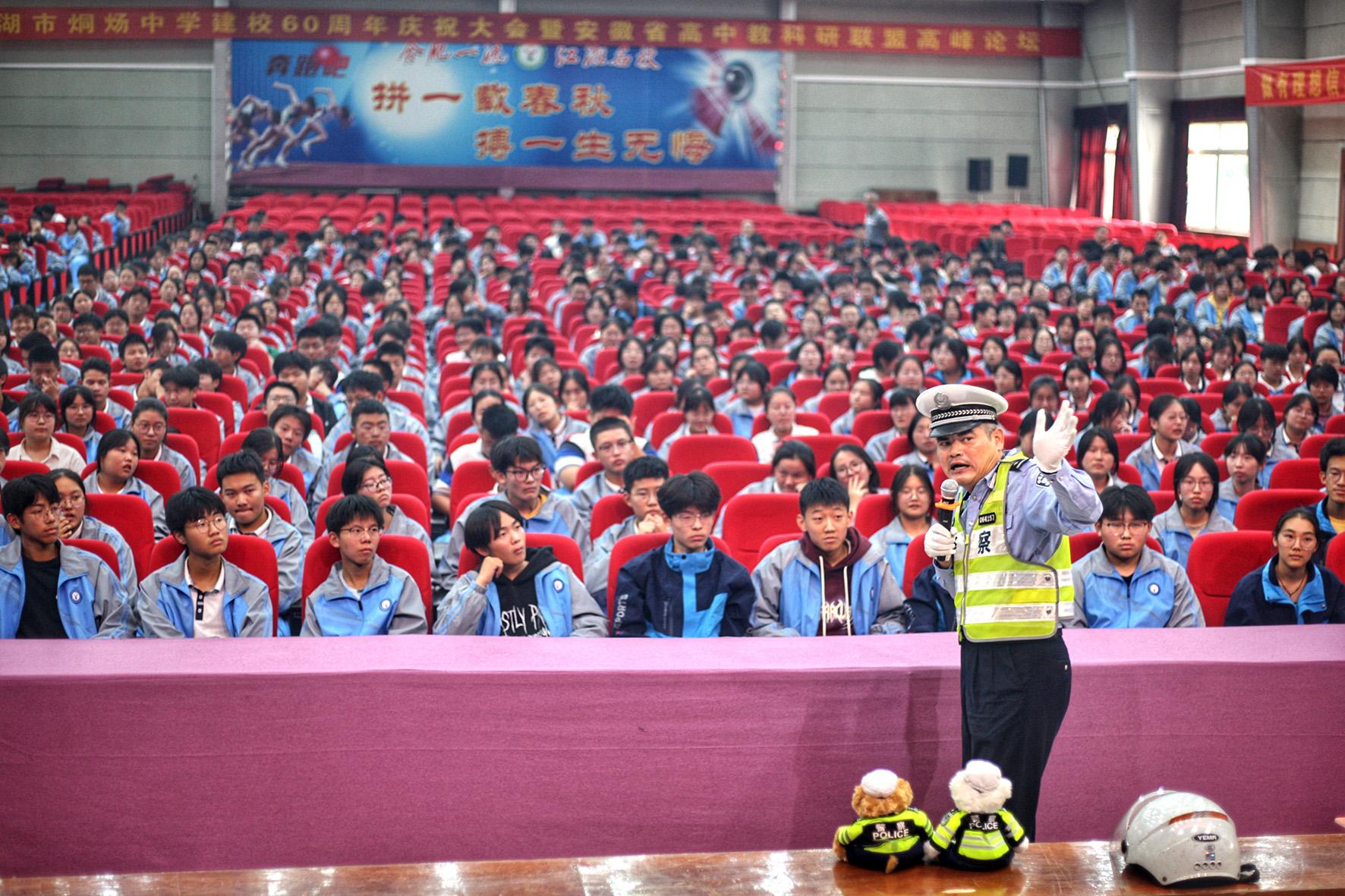 10月11日,安徽省巢湖市公安局交警大隊(duì)民警走進(jìn)烔煬中學(xué)開展交通安全教育宣講活動。