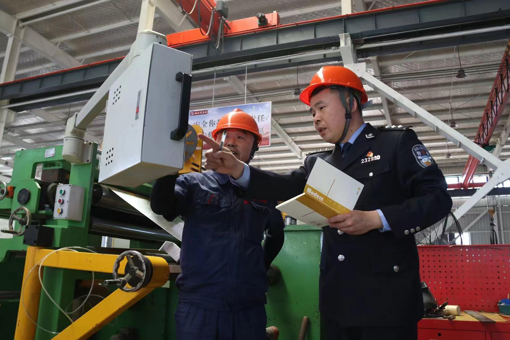 圖為民警走進企業(yè)了解情況,開展預(yù)防經(jīng)濟犯罪知識宣傳。
