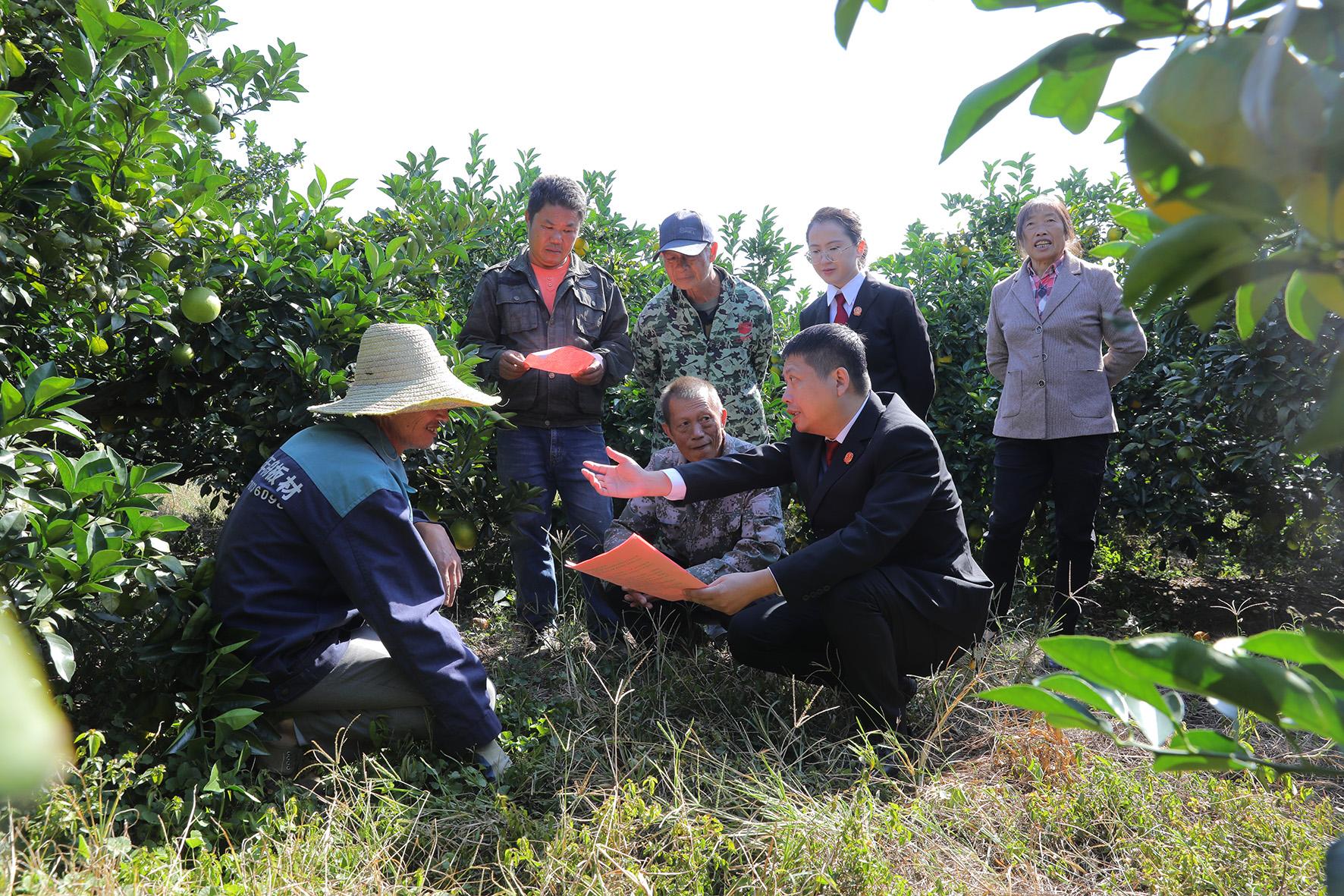 眼下正是贛南臍橙即將進(jìn)入成熟采摘銷售的時(shí)節(jié)。10月24日,江西省寧都縣人民法院石上法庭法官在會(huì)同鄉(xiāng)南田村召集果農(nóng)現(xiàn)場座談,向果農(nóng)詳細(xì)講解臍橙采摘、運(yùn)輸、倉儲過程中易出現(xiàn)的問題和買賣合同簽訂過程中的法律風(fēng)險(xiǎn)。