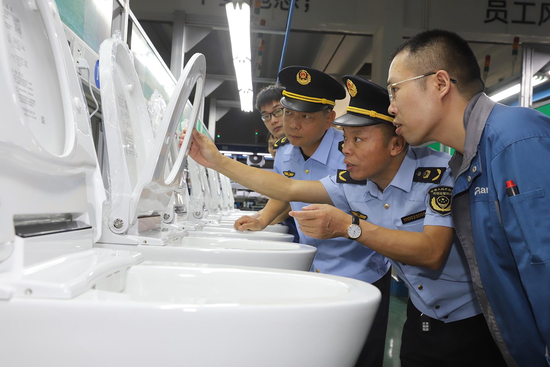 10月23日,浙江省臺州市路橋區(qū)橫街鎮(zhèn)市場監(jiān)督管理所執(zhí)法人員在轄區(qū)一家衛(wèi)浴企業(yè)走訪,并監(jiān)督企業(yè)嚴把產(chǎn)品質(zhì)量關(guān)。