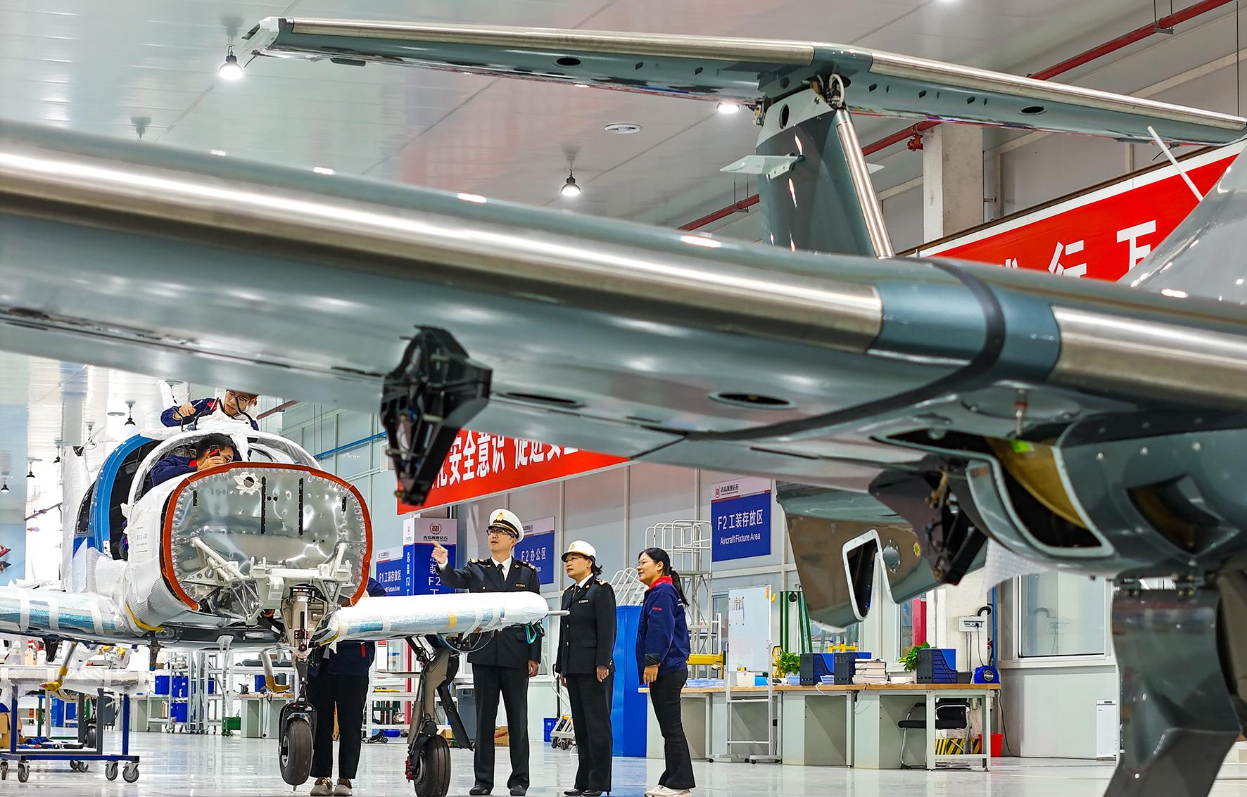 11月3日,青島某飛機(jī)制造公司整機(jī)裝配線上一派繁忙,青島大港海關(guān)關(guān)員在現(xiàn)場(chǎng)監(jiān)管。