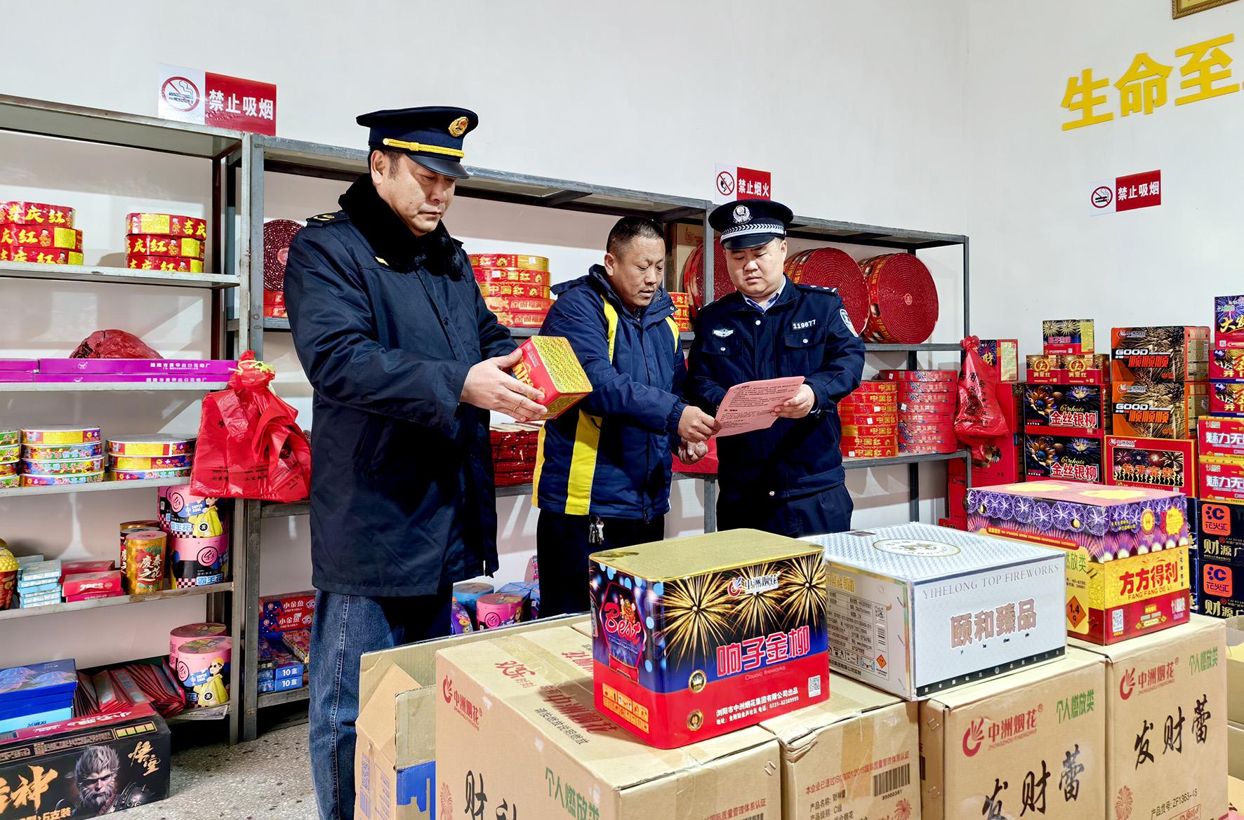 12月25日,山東省棗莊市公安局山亭分局北莊派出所民警和市場(chǎng)監(jiān)督管理人員對(duì)轄區(qū)煙花爆竹銷售點(diǎn)開展安全檢查。