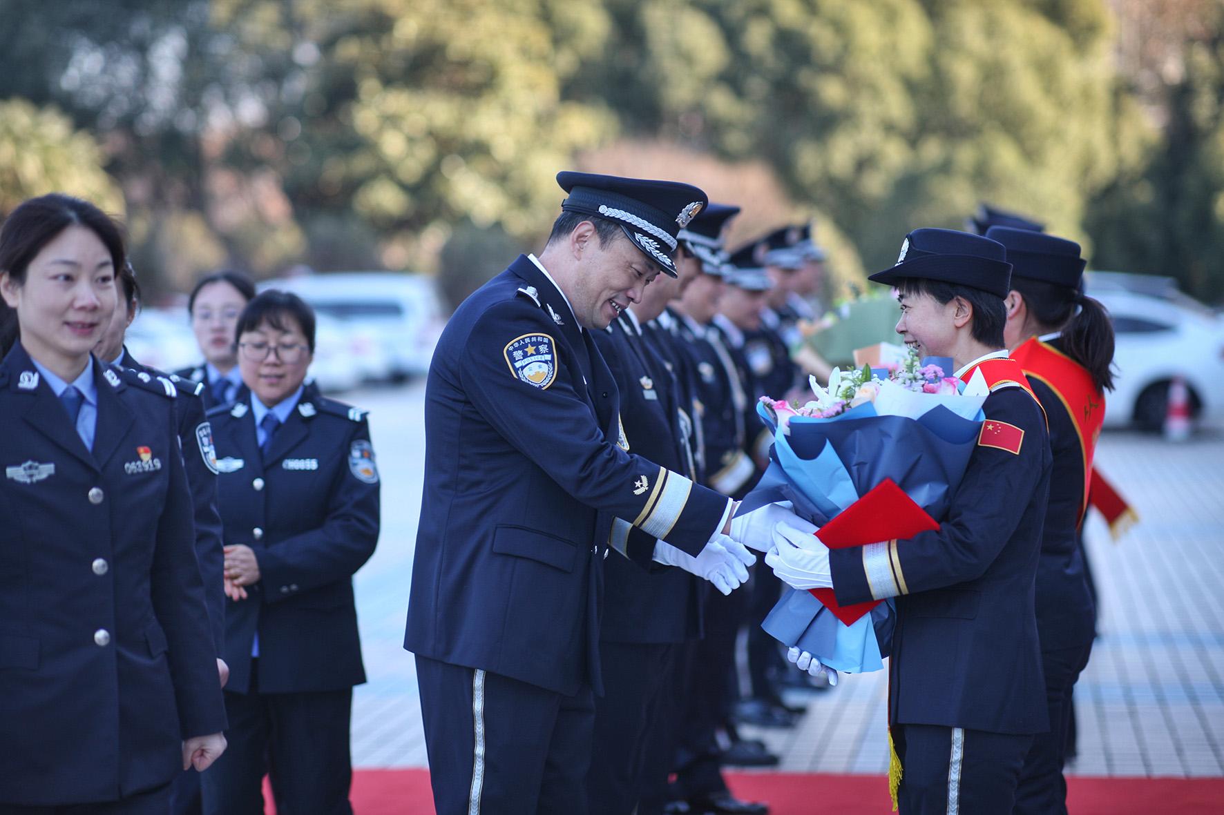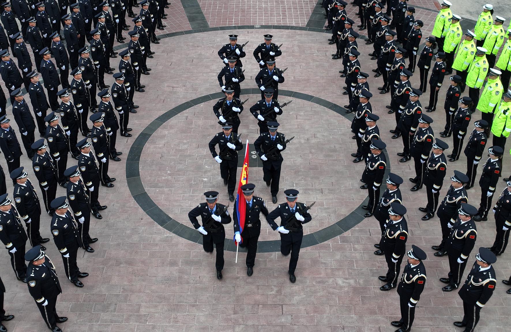 1月10日,為熱烈慶祝第五個中國人民警察節(jié),上海市公安局崇明分局舉行升警旗、重溫入警誓詞活動。