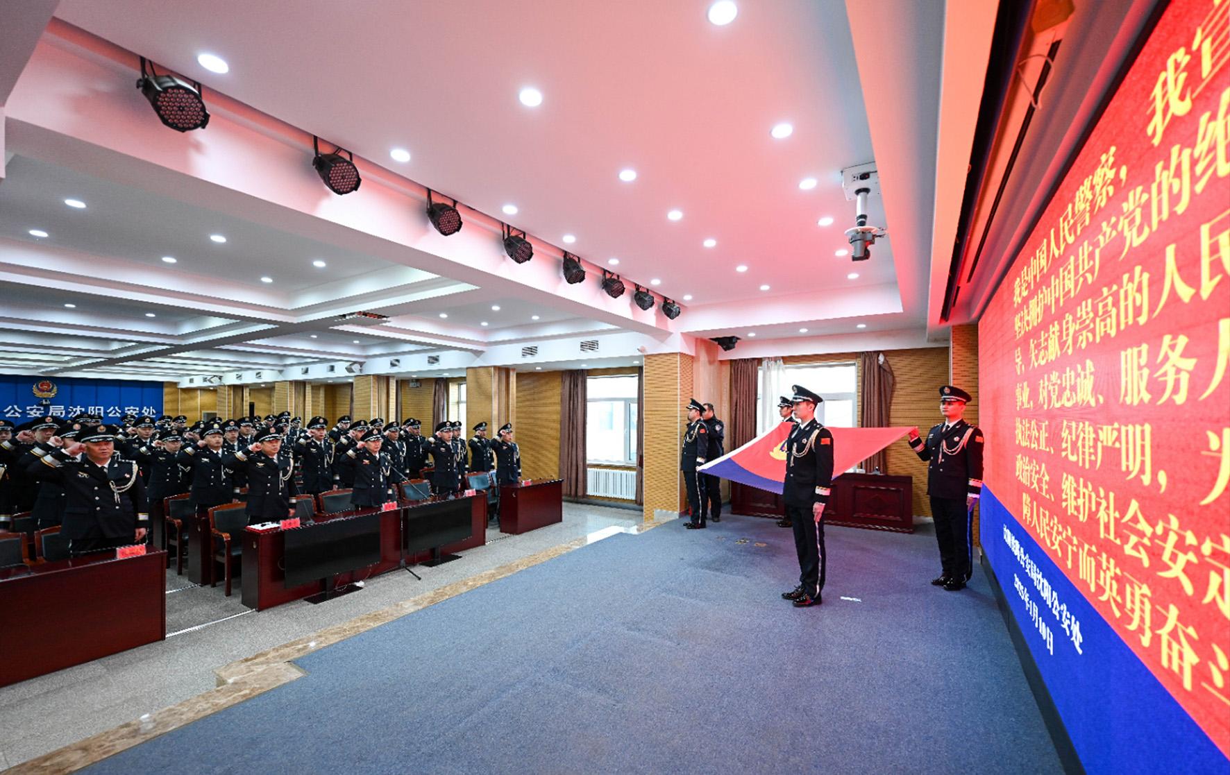 1月10日,沈陽鐵路公安局沈陽公安處舉行“公安心向黨 護(hù)航新征程”主題活動,慶祝第五個中國人民警察節(jié)。
