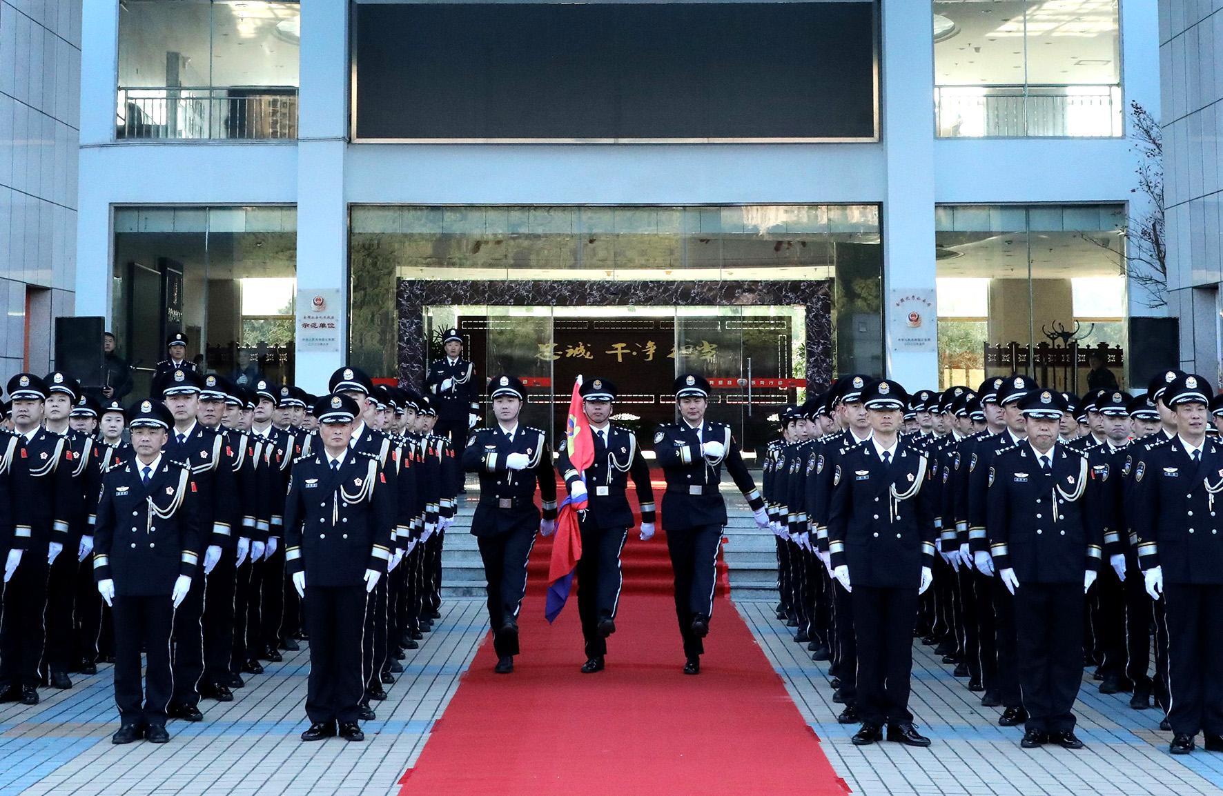 1月10日,貴州省赤水市公安局組織黨員民輔警舉行“奏警歌、升警旗暨公安機(jī)關(guān)人民警察誓詞宣誓儀式”活動,慶祝第五個中國人民警察節(jié)。