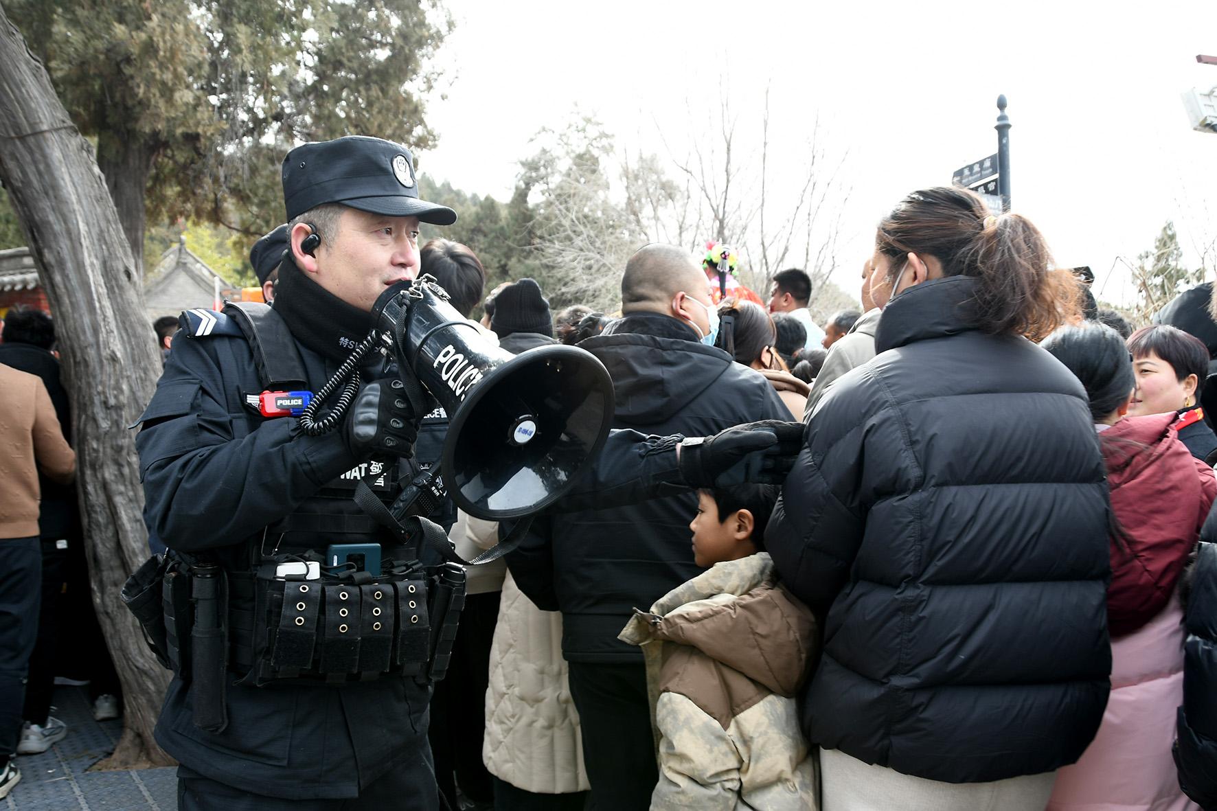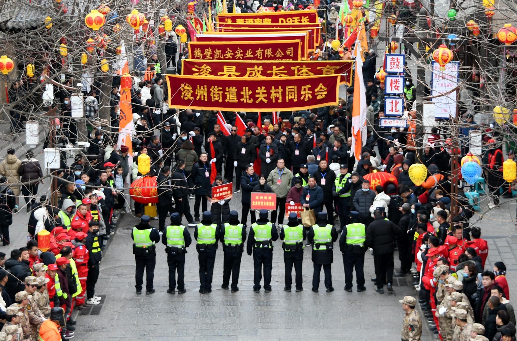 2月6日,河南省??h公安局民警輔警在正月古廟會(huì)現(xiàn)場(chǎng)執(zhí)勤。
