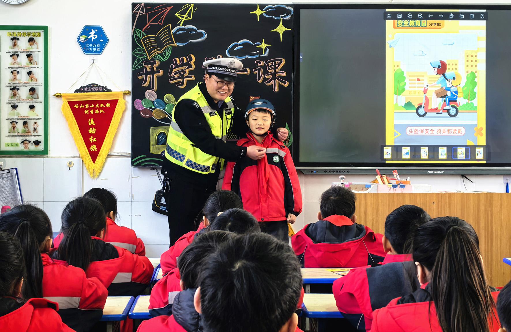 2月13日,安徽省碭山縣公安局交警大隊(duì)民警輔警走進(jìn)實(shí)驗(yàn)小學(xué),開(kāi)展“開(kāi)學(xué)第一課”活動(dòng)。