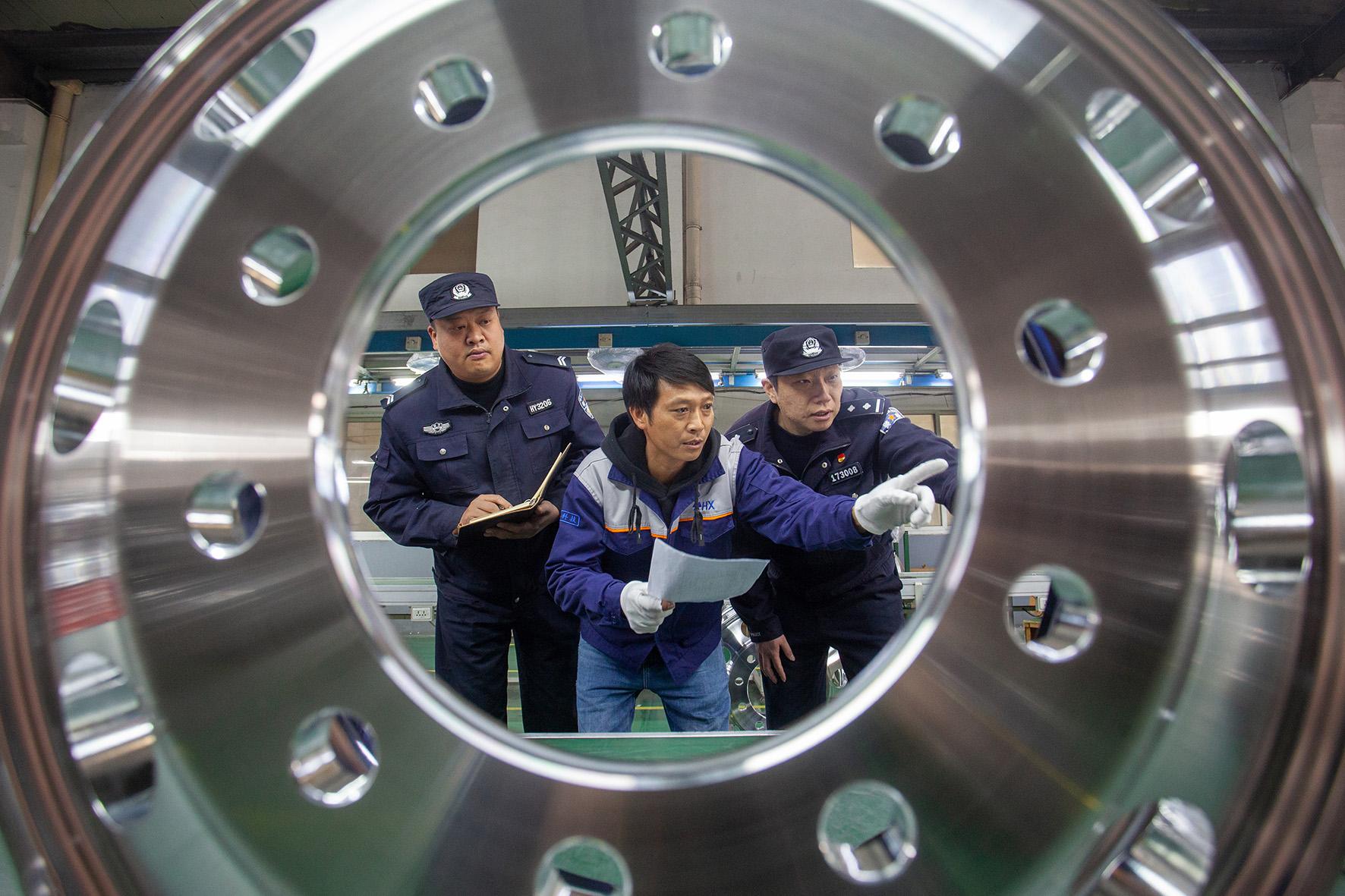 2月24日,浙江省臺(tái)州市公安局黃巖分局江口派出所民警來到轄區(qū)內(nèi)的重點(diǎn)企業(yè)開展安全檢查,消除安全隱患,并征求企業(yè)對(duì)公安工作的意見建議。
