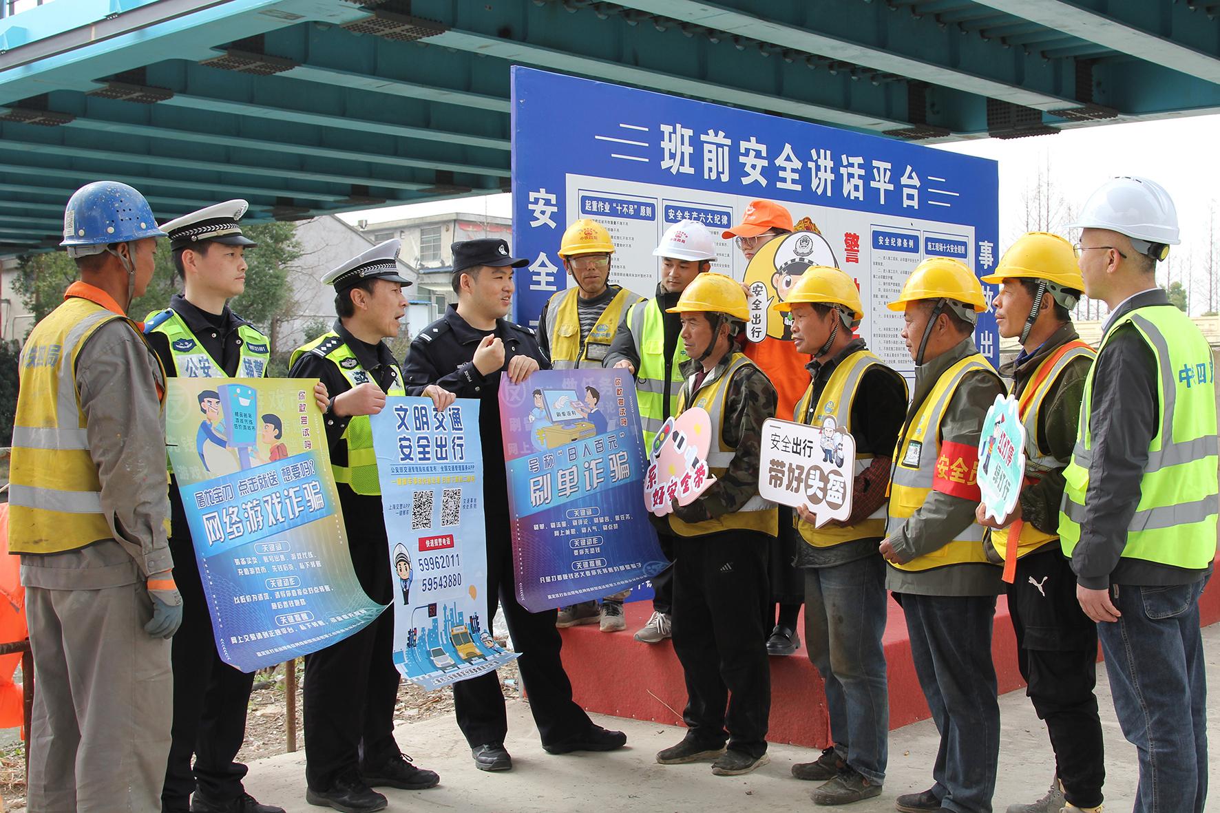 3月11日,上海市公安局嘉定分局交警支隊、徐行派出所民輔警會同平安志愿者走進(jìn)滬渝蓉鐵路滬寧段二標(biāo)二分部建設(shè)工地,向務(wù)工人員開展交通安全、人口信息自主申報、反詐騙等知識宣講。