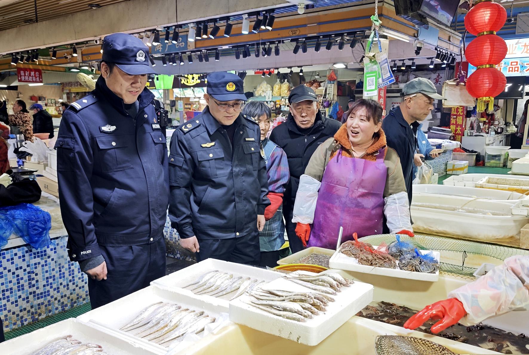圖為聯(lián)合執(zhí)法人員檢查市場(chǎng)銷售刀魚情況。