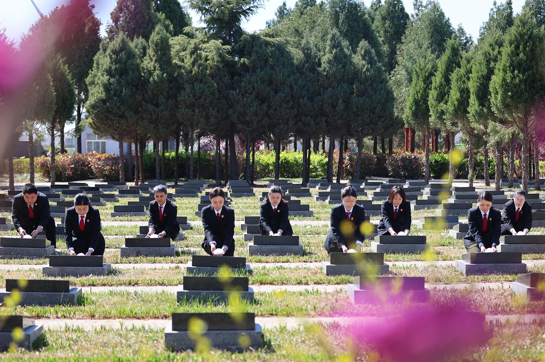 4月2日,河南省安陽縣人民法院組織干警前往安陽縣辛村烈士紀(jì)念園開展清明祭奠活動。