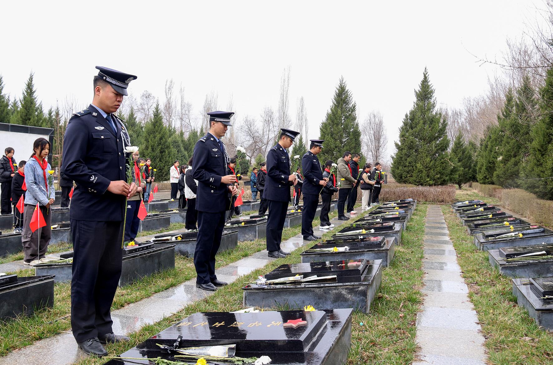 4月2日,甘肅省肅南縣公安局組織民輔警來到紅西路軍烈士陵園開展清明祭掃活動。