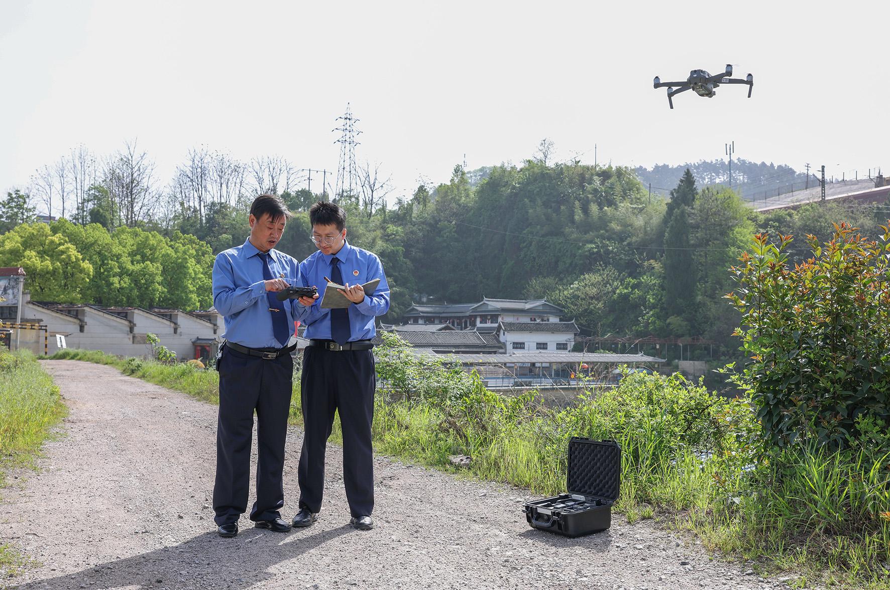 4月14日,貴州省銅仁市玉屏侗族自治縣人民檢察院檢察干警對一起未批先建違法占地案件采取無人機(jī)航拍取證。