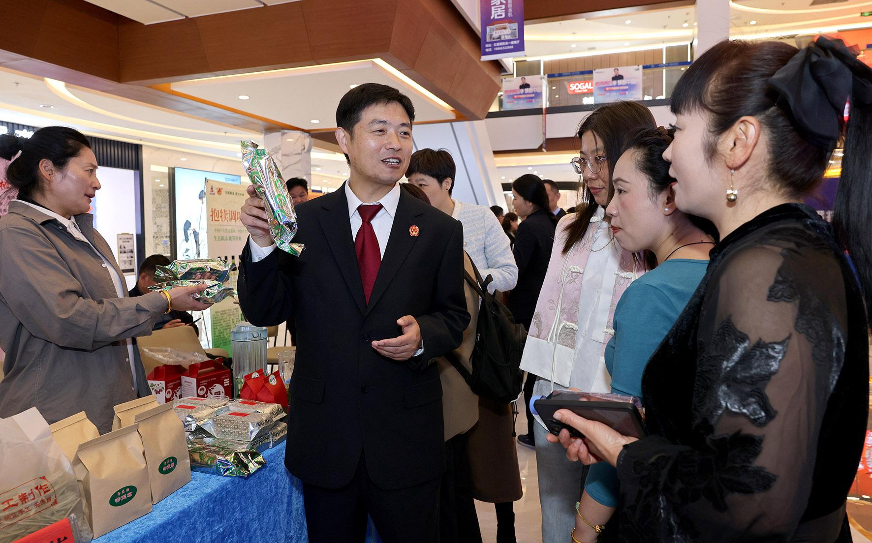 圖為法官向群眾普及農(nóng)產(chǎn)品地理標志保護相關法律知識。