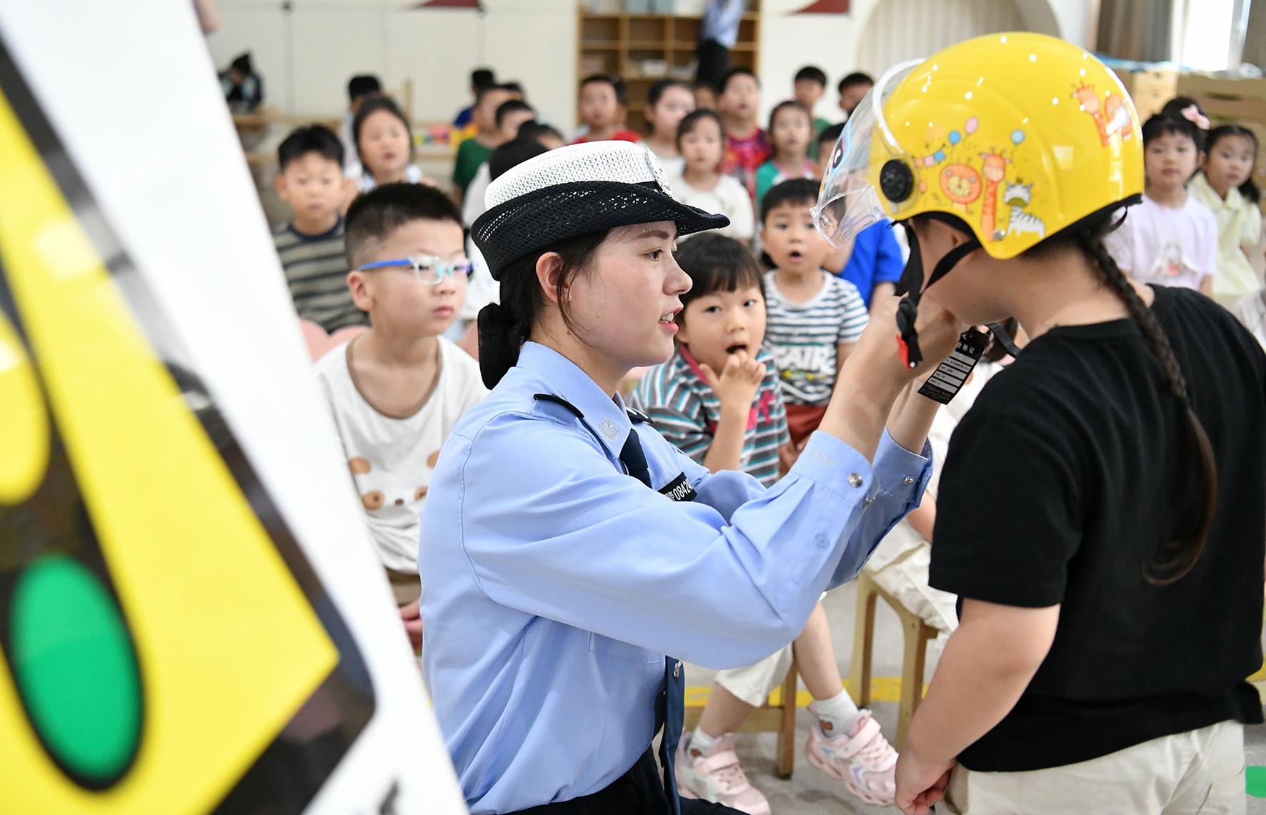 6月11日,安徽省阜南縣公安局交管大隊民輔警走進轄區(qū)幼兒園開展“文明交通 安全‘童’行”宣傳活動。