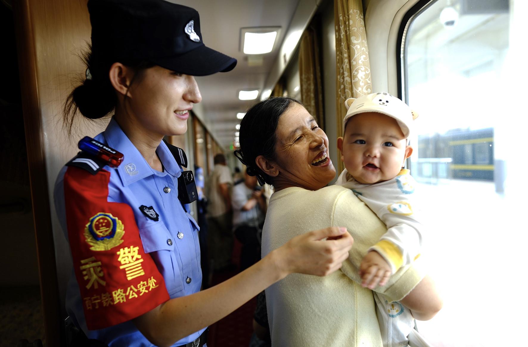 7月1日,青藏鐵路公安局西寧公安處乘警支隊(duì)民警在從四川成都開(kāi)往青海西寧的K1058次列車(chē)上服務(wù)旅客。
