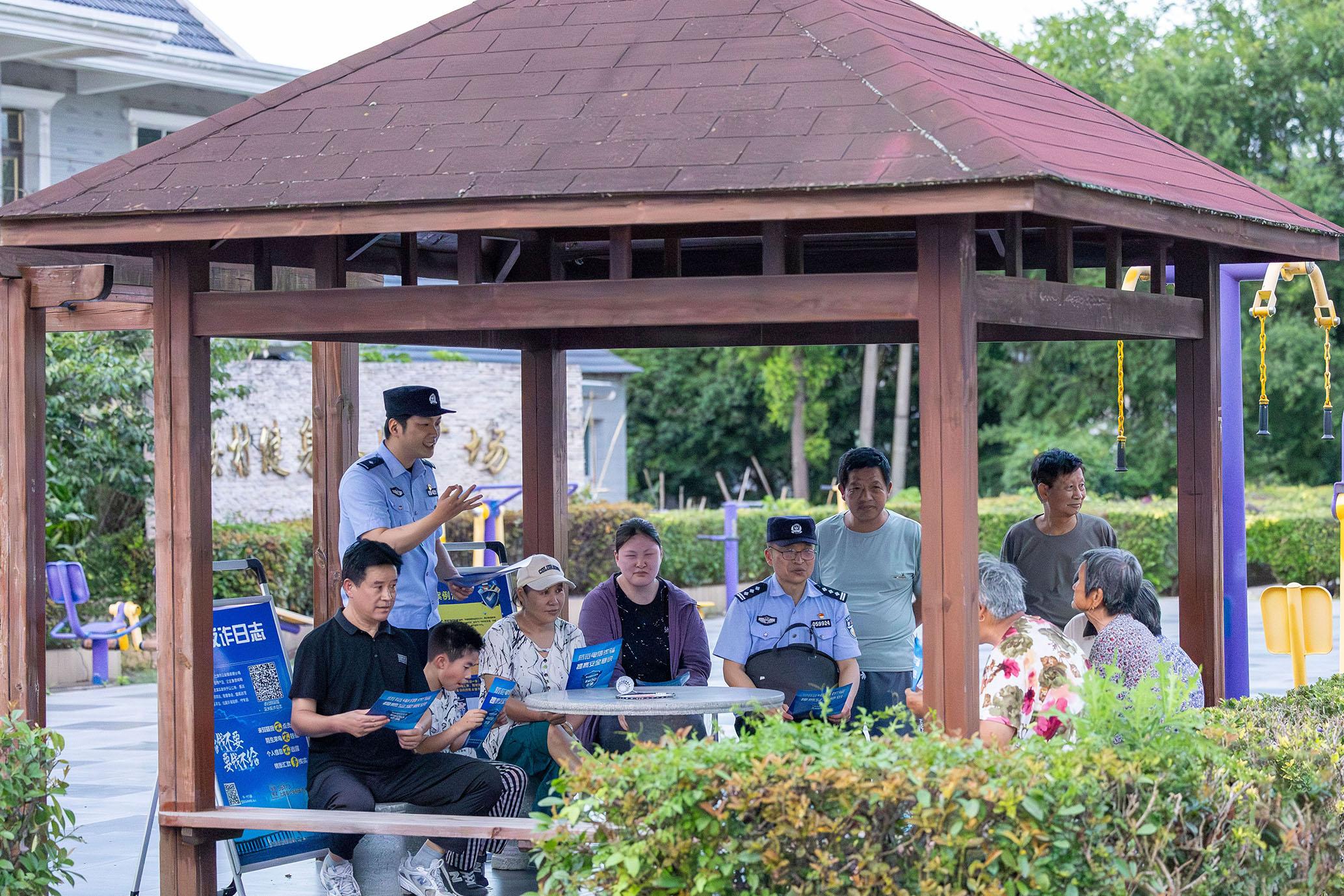 圖為民警以案說(shuō)法,向村民講解反詐知識(shí)。