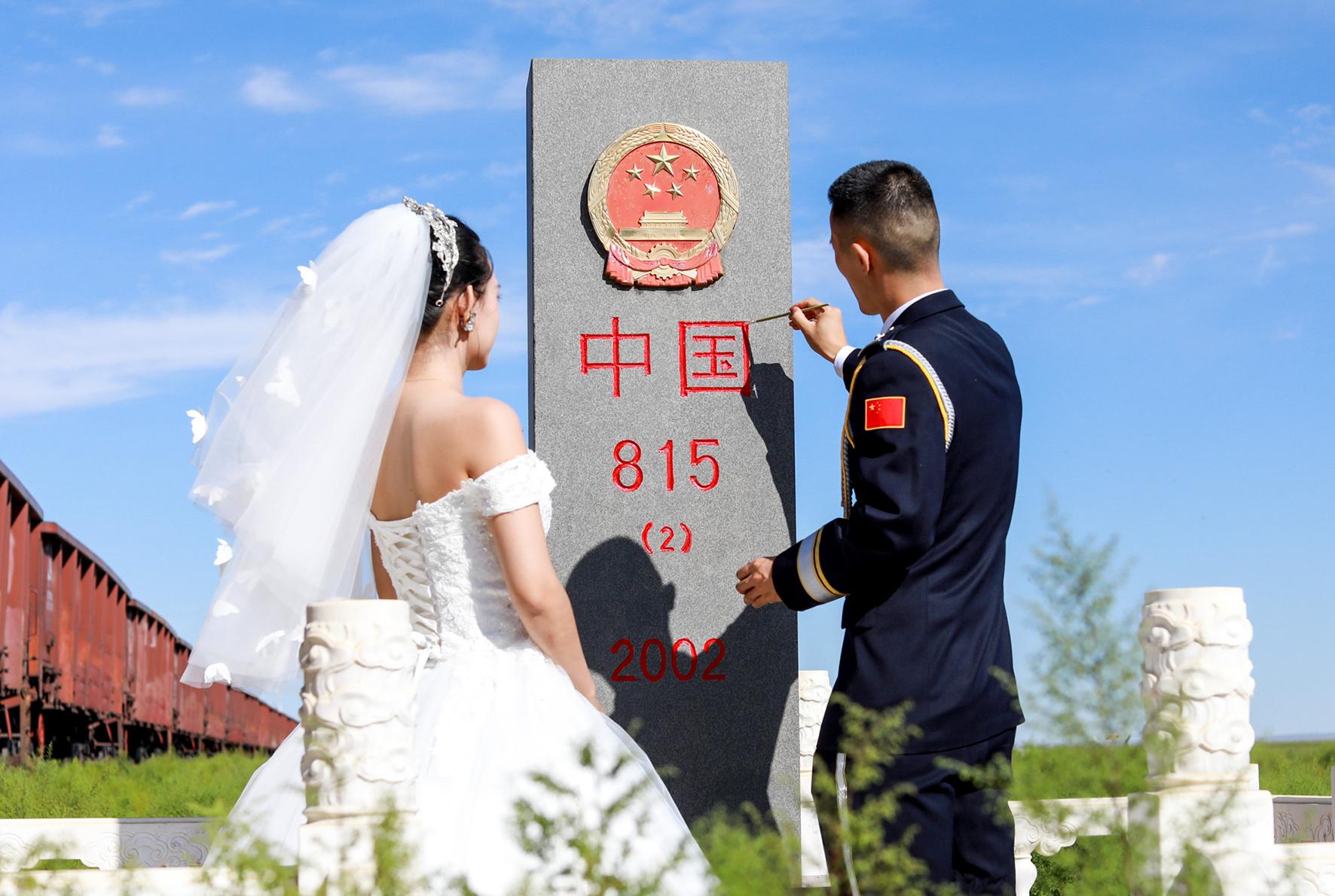 8月16日,內(nèi)蒙古出入境邊防檢查總站二連出入境邊防檢查站隆重舉辦第六屆“愛在北疆 情定國(guó)門”集體婚禮,9對(duì)新人在象征著國(guó)家主權(quán)與尊嚴(yán)的巍峨國(guó)門前,許下了“執(zhí)子之手 與子偕老”的誓言。