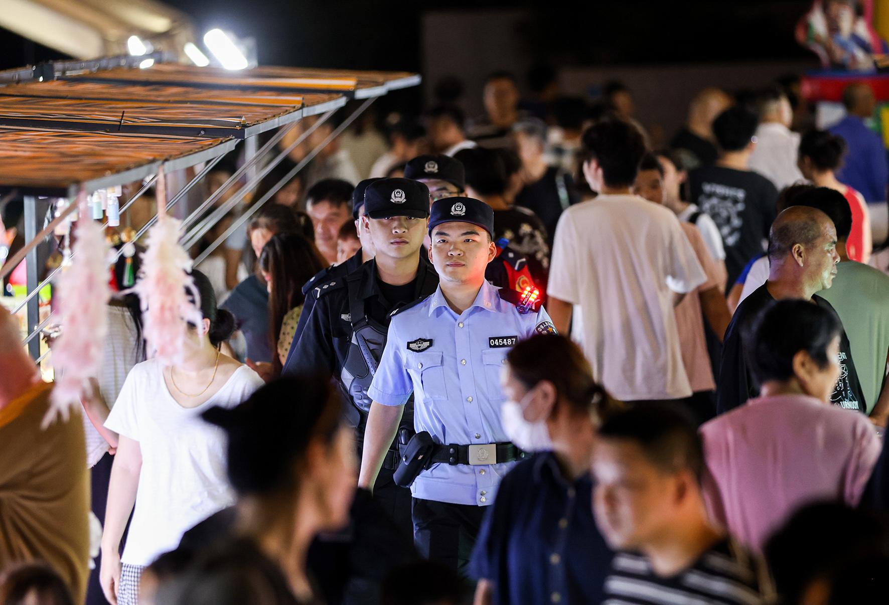 8月18日晚,浙江省嘉興市公安局南湖區(qū)分局新豐派出所結(jié)合夏季行動,在轄區(qū)內(nèi)商圈、夜市、燒烤攤等人員密集場所,加大巡邏頻次,確?!耙娋臁⒁娋?、見警燈”,有效提升群眾安全感,守護(hù)夏夜煙火氣。