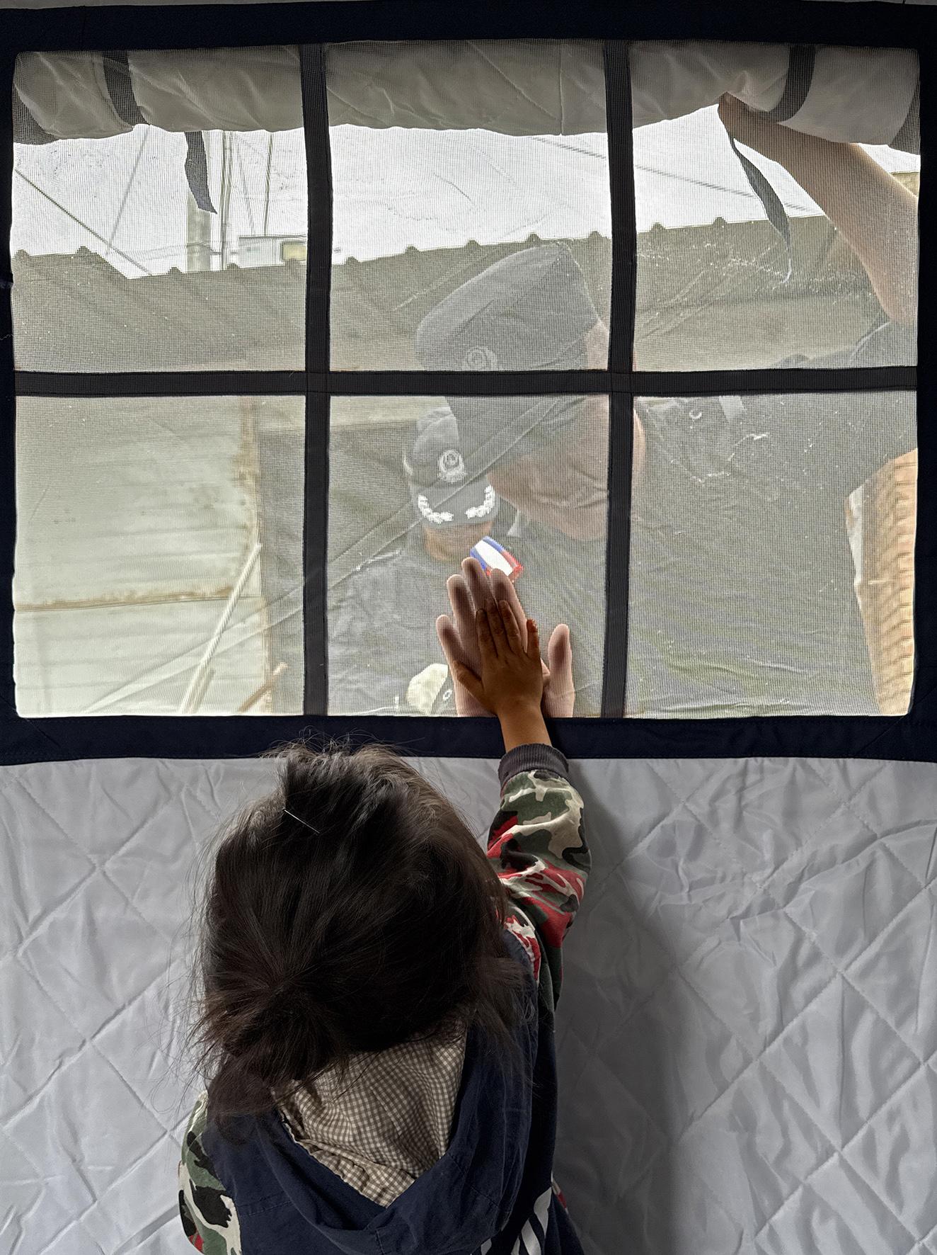 8月10日,瑤瑤在帳篷里和“民警叔叔”擊掌。張翔 攝