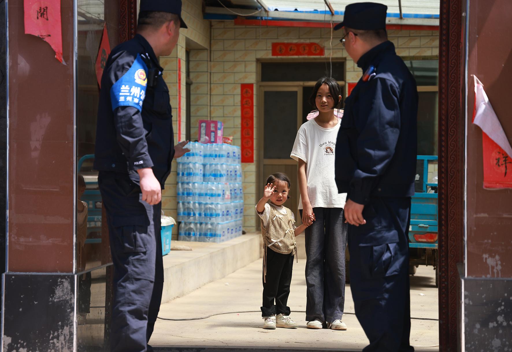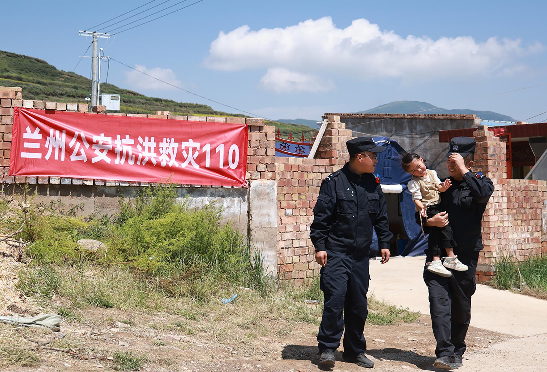 “叔叔來啦!”8月14日,在甘肅榆中縣新營(yíng)鎮(zhèn)八門寺小泥窩村的公安指揮部帳篷里,一聲清脆稚嫩的呼喊打破了忙碌的氛圍,小女孩瑤瑤像一只歡快的小鳥,一頭撲進(jìn)蘭州市公安局新區(qū)分局輔警蘇明凱、張?jiān)品宓膽牙铩?/p>