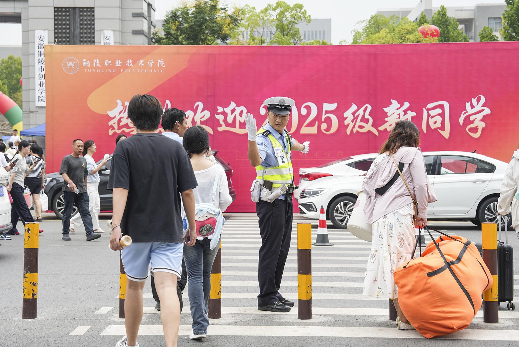 9月7日,安徽省銅陵職業(yè)技術(shù)學(xué)院迎來(lái)2025級(jí)新生報(bào)到高峰。銅陵市公安局交警支隊(duì)科學(xué)部署警力疏導(dǎo)交通秩序,有效緩解校園周邊交通壓力。