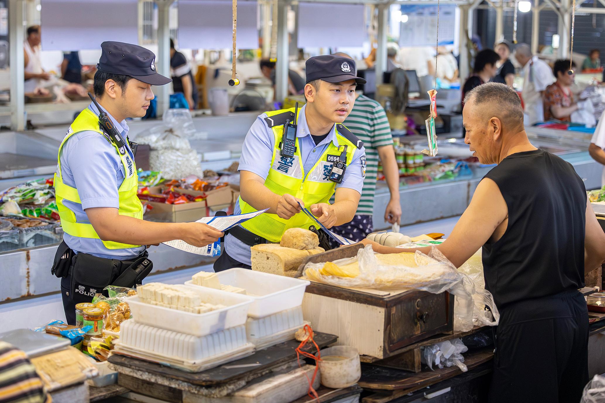 9月8日,上海市公安局崇明分局建設(shè)派出所民警來到轄區(qū)農(nóng)貿(mào)市場(chǎng),向商戶和群眾開展電信網(wǎng)絡(luò)詐騙防范宣傳。