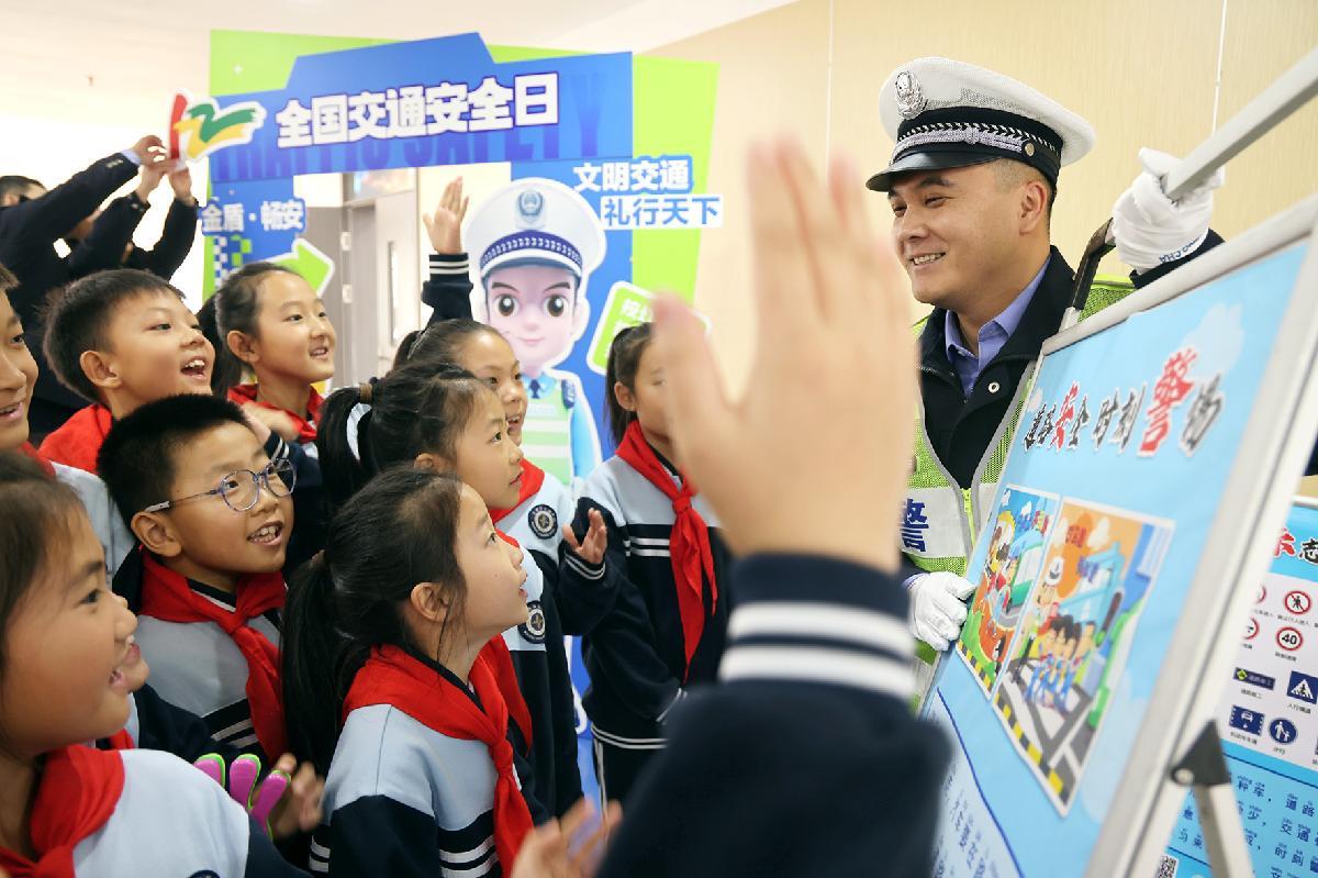 11月28日,安徽省巢湖市公安局交警大隊(duì)民輔警走進(jìn)校園開展交通安全宣傳。