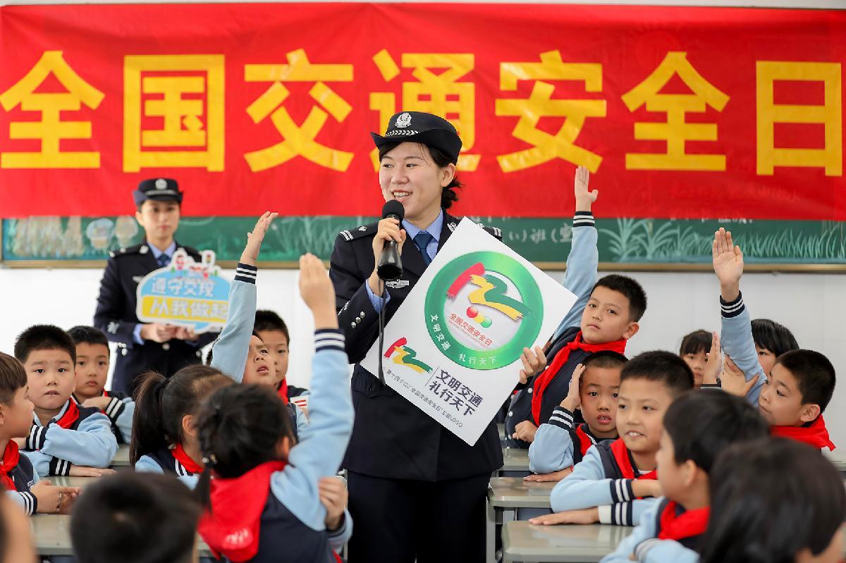 12月1日,第十四個(gè)“全國(guó)交通安全日”來臨之際,福建省福州市公安局鼓樓分局洪山派出所聯(lián)合鼓樓交警大隊(duì)民警走進(jìn)茶園山中心小學(xué),開展交通安全知識(shí)宣傳。