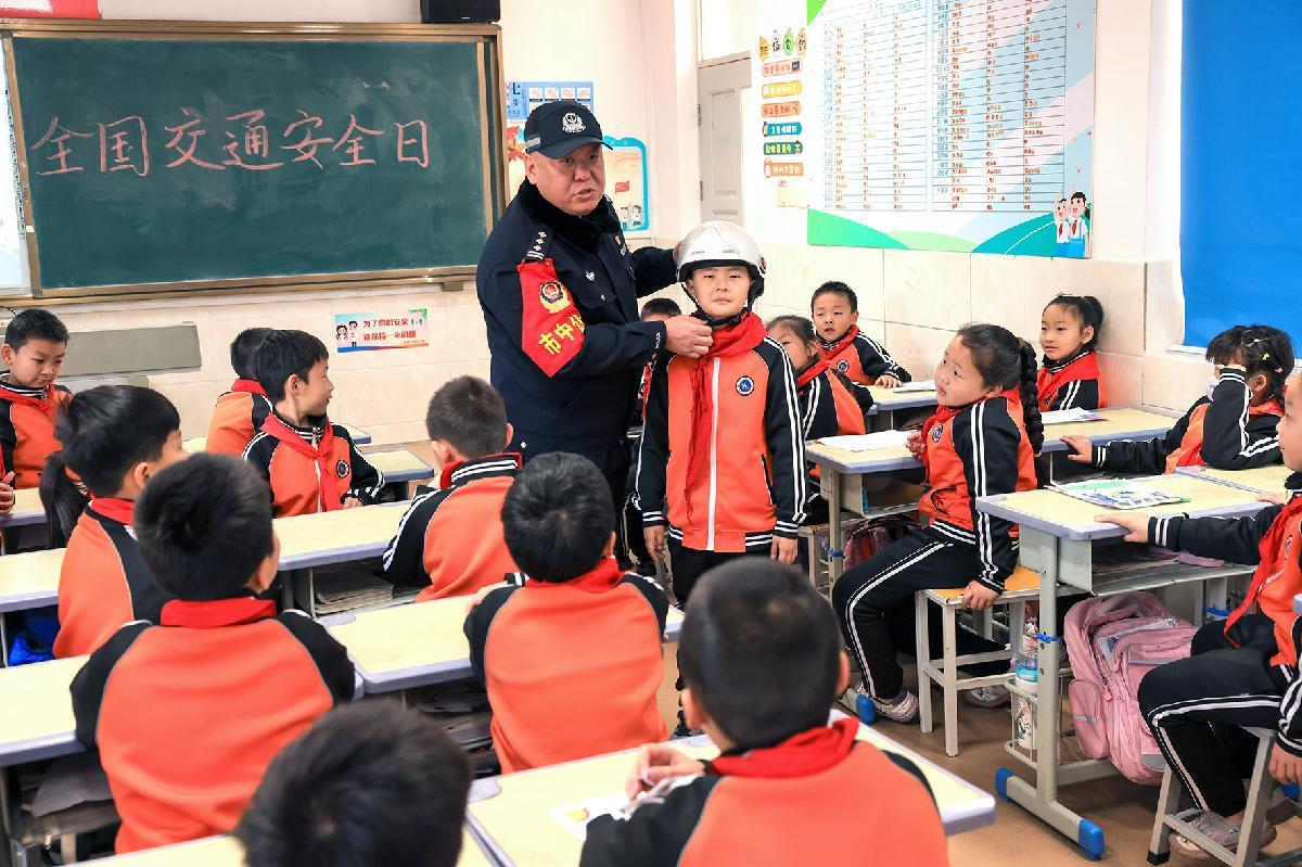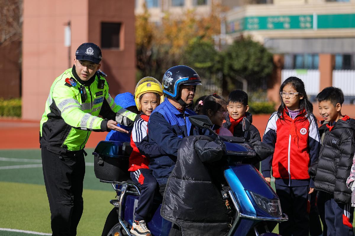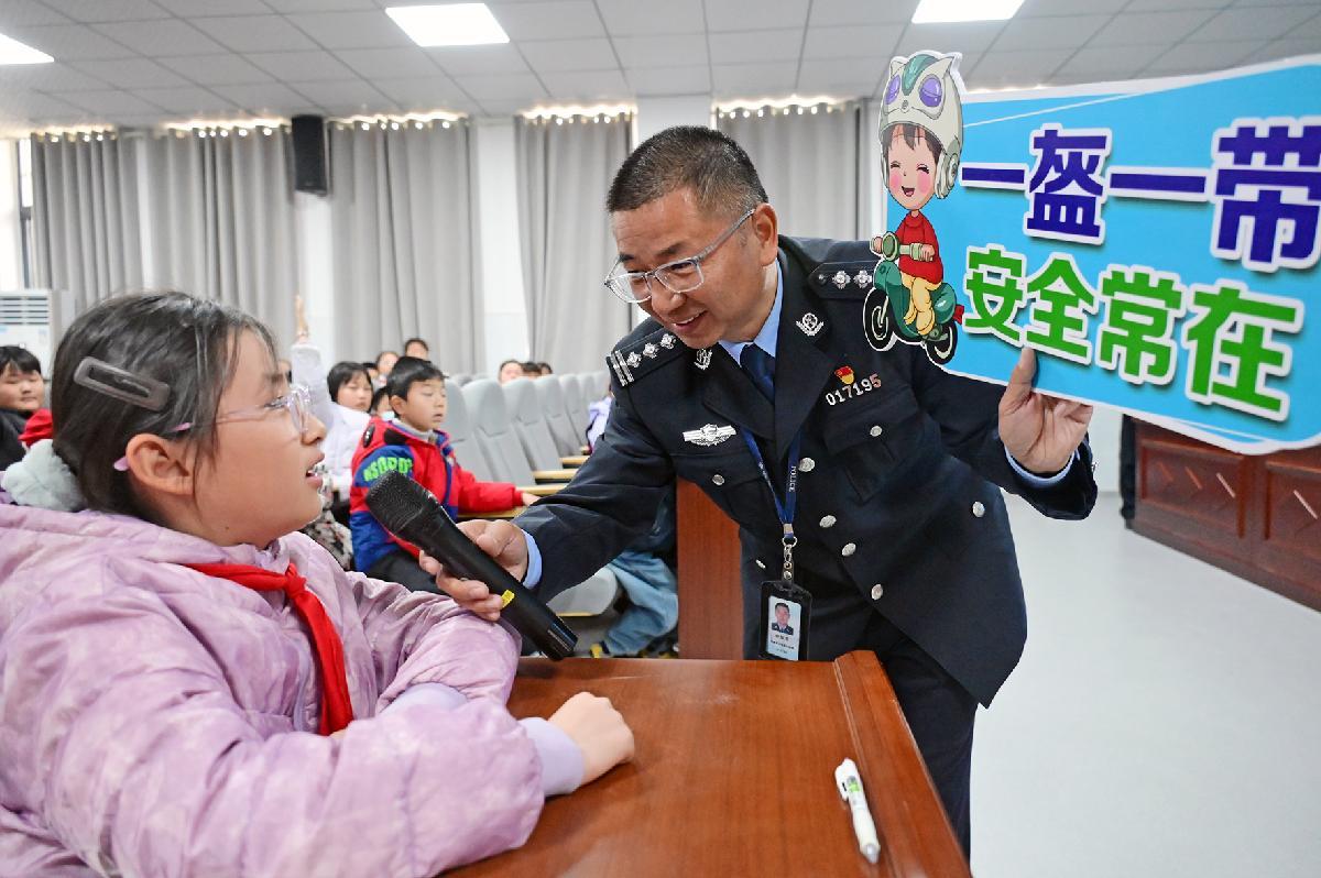 12月2日,山東省濟南市公安局市中分局六里山派出所民警來到濟南市玉函小學(xué),開展“全國交通安全日”主題宣傳。