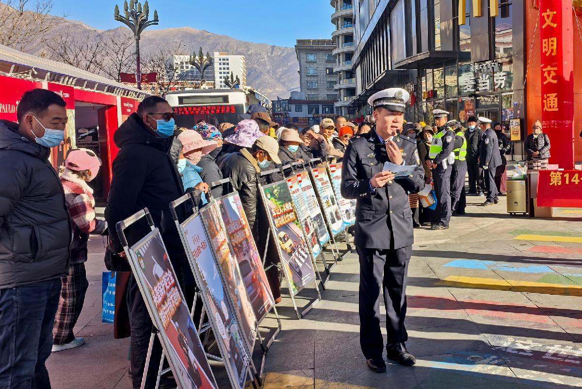 12月2日,西藏自治區(qū)山南市公安局交通管理支隊民警走進轄區(qū)廣場開展“全國交通安全日”主題宣傳。