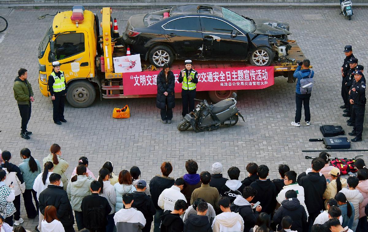 12月1日,安徽省當(dāng)涂縣公安局交管大隊民警走進馬鞍山學(xué)院開展“全國交通安全日”主題宣傳。