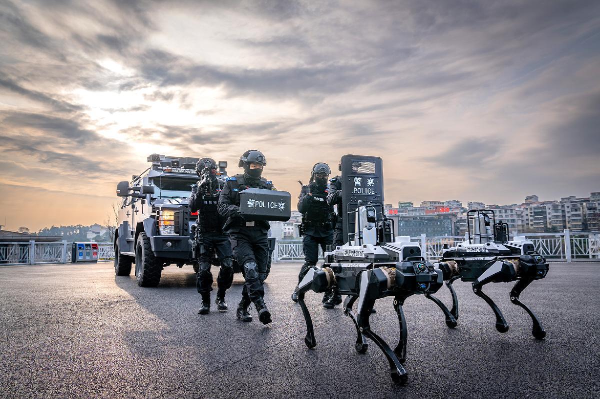 1月5日,四川省綿陽市公安局特巡警支隊(duì)特警大隊(duì)以智能裝備賦能實(shí)戰(zhàn)練兵,開展人機(jī)協(xié)同實(shí)戰(zhàn)化演練。