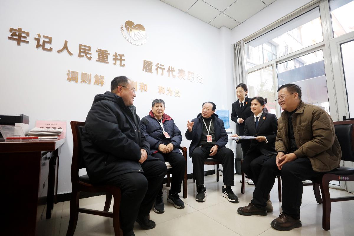 圖為法官與人大代表一起對案件進行現(xiàn)場調(diào)解。