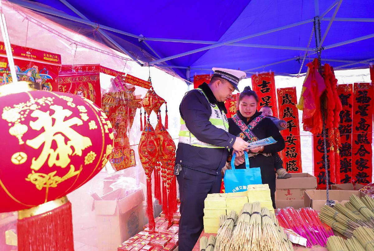 2月11日,貴州省丹寨縣公安局交通管理大隊巧借農(nóng)村“趕集日”,向群眾宣講交通安全知識。