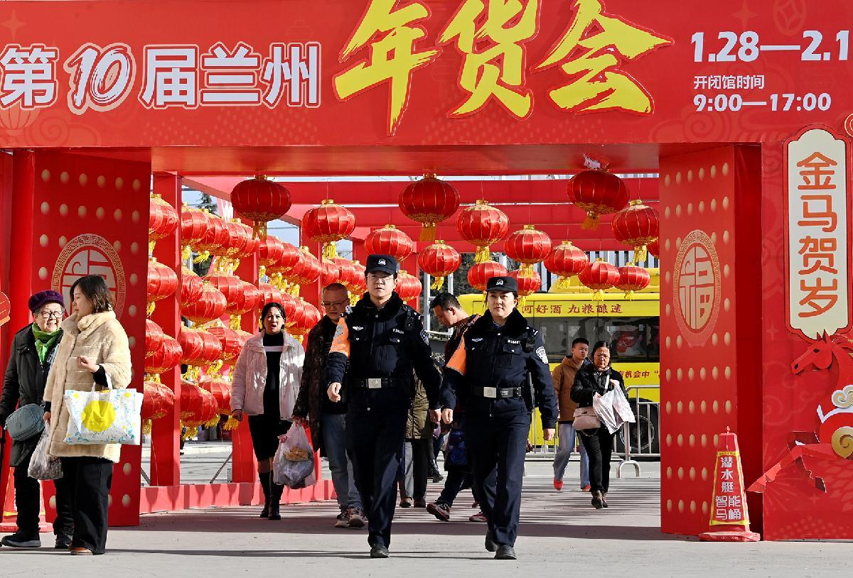 2月10日,甘肅省蘭州市公安局城關(guān)分局鹽場路派出所民警輔警在年貨集市上巡邏,向經(jīng)營業(yè)主宣傳安全知識,積極服務(wù)市民群眾,全力打造“平安集市”。