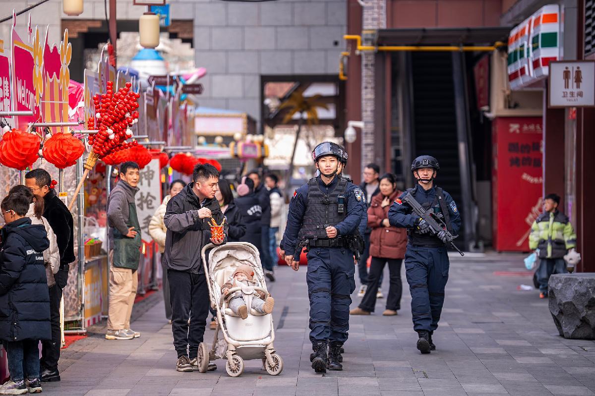 2月11日,浙江省長興縣公安局巡特警大隊積極開展街面巡邏工作,全力筑牢新春安全防線。