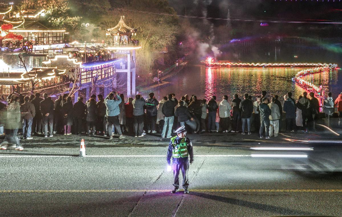 3月2日,浙江省武義縣公安局桃溪派出所民輔警在鬧元宵活動現(xiàn)場維護(hù)秩序。