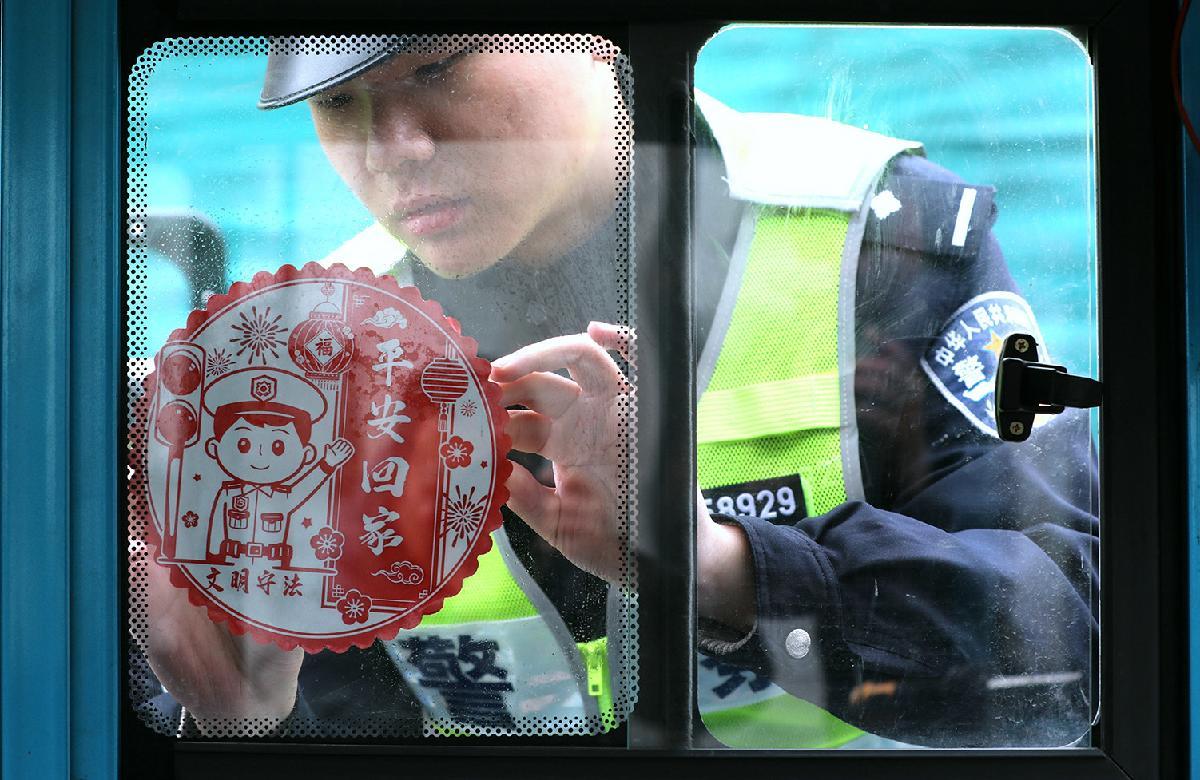2月2日,是2026年春運(yùn)首日。安徽寧國市公安局交管大隊(duì)執(zhí)勤民警向過往車輛發(fā)放“平安回家”窗花和“溫馨提示”單,把一路平安的誠摯祝愿送給每位駕駛?cè)藛T。
