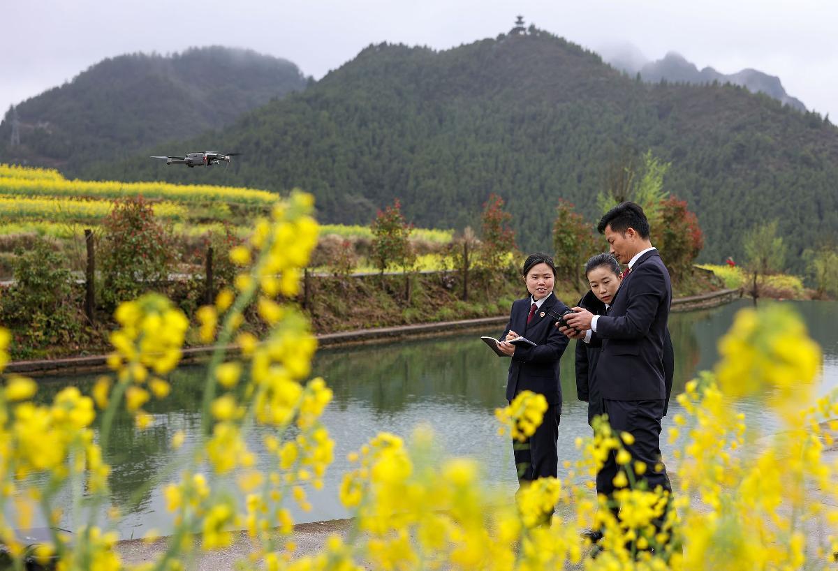 圖為檢察干警運(yùn)用無人機(jī)對轄區(qū)重點(diǎn)地段實(shí)施生態(tài)環(huán)境巡查取證。