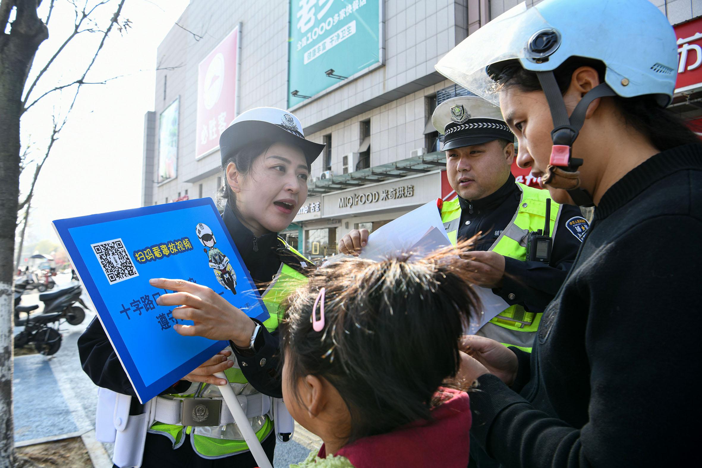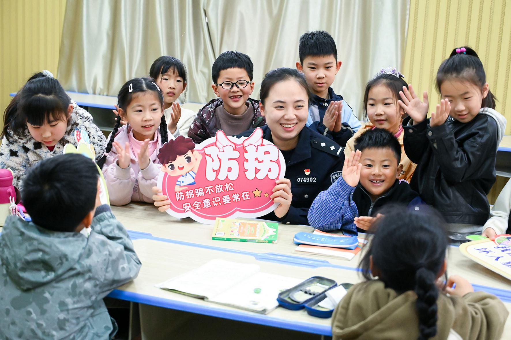 4月2日,安徽省馬鞍山市和縣公安局民警在青少年活動中心,利用“春假”契機,為孩子們開展防拐騙、防溺水等主題宣傳。