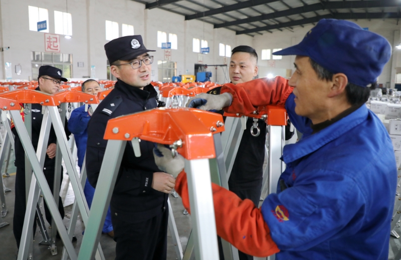 近日,江西省九江市公安局濂溪分局虞家河派出所民警輔警聯(lián)合市場(chǎng)監(jiān)管部門(mén)人員深入轄區(qū)企業(yè)進(jìn)行走訪和開(kāi)展安全生產(chǎn)隱患排查,了解企業(yè)需求,并征求員工意見(jiàn)建議。圖為民警輔警和市場(chǎng)監(jiān)管部門(mén)人員走訪企業(yè)并開(kāi)展安全生產(chǎn)隱患排查。 本報(bào)通訊員 游建棟 攝
