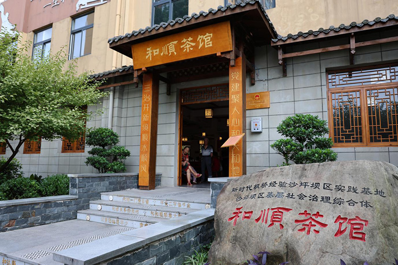 茶館在川渝地區(qū)是最常見的休閑去處,在重慶市沙坪壩區(qū)回龍壩鎮(zhèn)聚龍城社區(qū),一間非民辦“和順茶館”成為當?shù)匕傩盏男聦櫍撼撕炔枇奶?,茶館還融合了各職能部門下沉社區(qū)的十幾個辦公室功能。政策宣講、糾紛調解、法律咨詢……一杯清茶間,社區(qū)里那些難辦、急辦的事總能得到妥善解決。