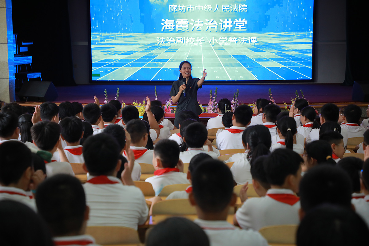 9月6日,河北省廊坊市中級人民法院法治副校長“開學第一課”走進廊坊市第一實驗小學。該院未成年人案件綜合審判庭庭長、廊坊市第一實驗小學法治副校長張海霞攜《海霞法治講堂》系列普法視頻,以預(yù)防校園欺凌為題進行授課。據(jù)了解,《海霞法治講堂》以法官張海霞為原型,運用數(shù)字虛擬技術(shù),合成河北省首個AI法官向未成年人講授法治課程。