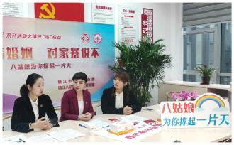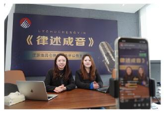 (圖為“八姑娘”公益律師聯(lián)盟成員做客鎮(zhèn)江市婦聯(lián)直播間。嚴(yán)海霞 攝)