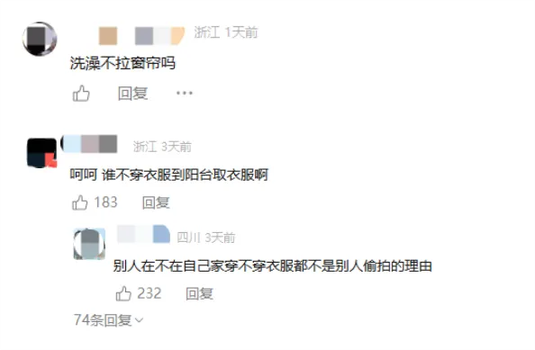 部分網(wǎng)友質(zhì)疑“洗澡為何不拉窗簾”,但更多聲音認(rèn)為,這種質(zhì)疑是典型的“受害者有罪論”。家本身應(yīng)是一個無需設(shè)防的空間,享受陽光和通風(fēng)是居民的基本權(quán)利,不能因?yàn)闊o人機(jī)的潛在威脅而犧牲在家的自由與安寧。