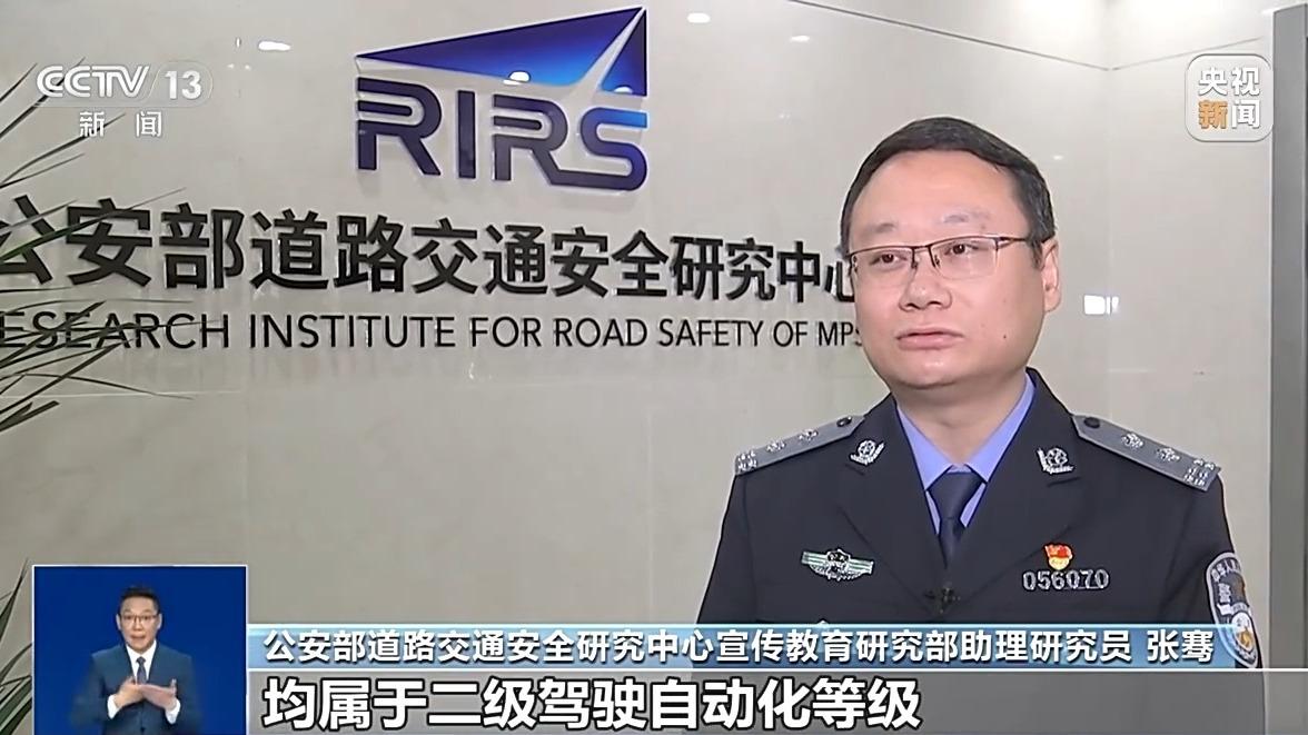公安部道路交通安全研究中心宣傳教育研究部助理研究員 張騫:現(xiàn)在市面上在售的所有車輛的技術特征均屬于二級駕駛自動化等級,也就是要求駕駛?cè)撕椭悄荞{駛系統(tǒng)共同完成車輛的動態(tài)運行。