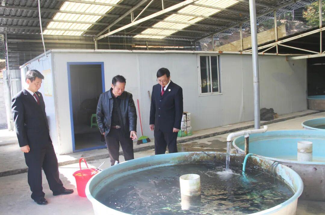 江口縣檢察院檢察官實(shí)地調(diào)查養(yǎng)殖企業(yè)的養(yǎng)殖設(shè)施。
