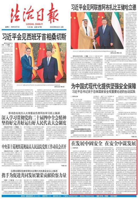 “備豫不虞,為國常道?!弊屛覀兏泳o密地團結(jié)在以習(xí)近平同志為核心的黨中央周圍,深入學(xué)習(xí)貫徹落實習(xí)近平法治思想,堅持總體國家安全觀,統(tǒng)籌發(fā)展和安全,充分發(fā)揮廣大人民群眾積極性、主動性、創(chuàng)造性,共筑堅不可摧的國家安全防線,不斷提升國家安全能力現(xiàn)代化水平,建設(shè)更高水平平安中國,為中國式現(xiàn)代化行穩(wěn)致遠提供更加堅強有力的安全保障。